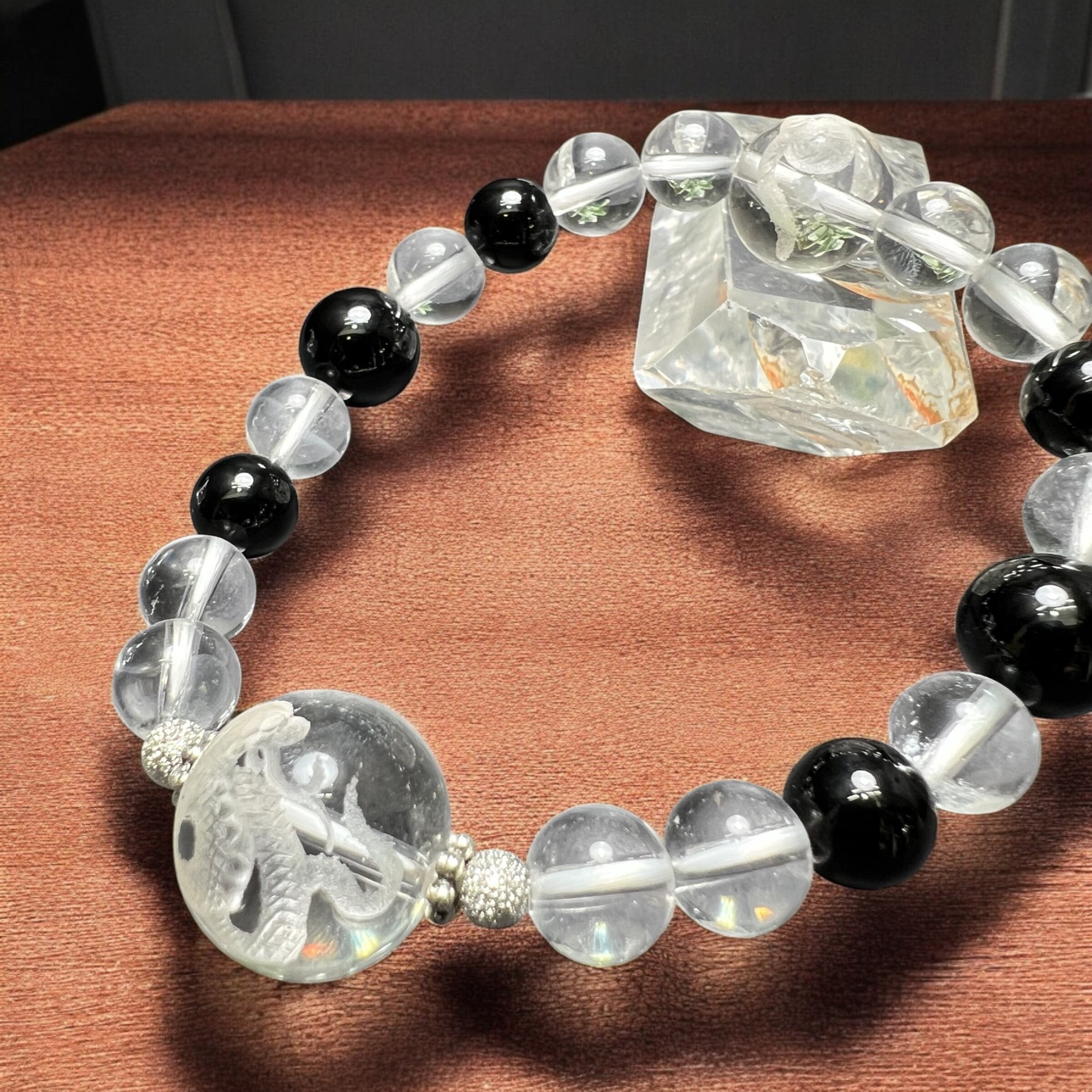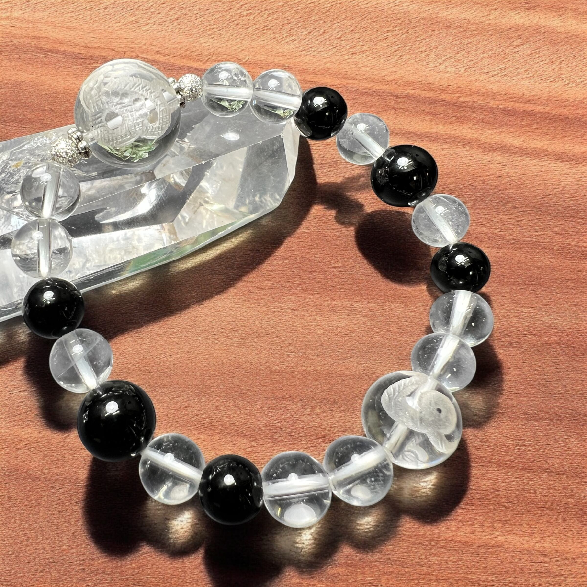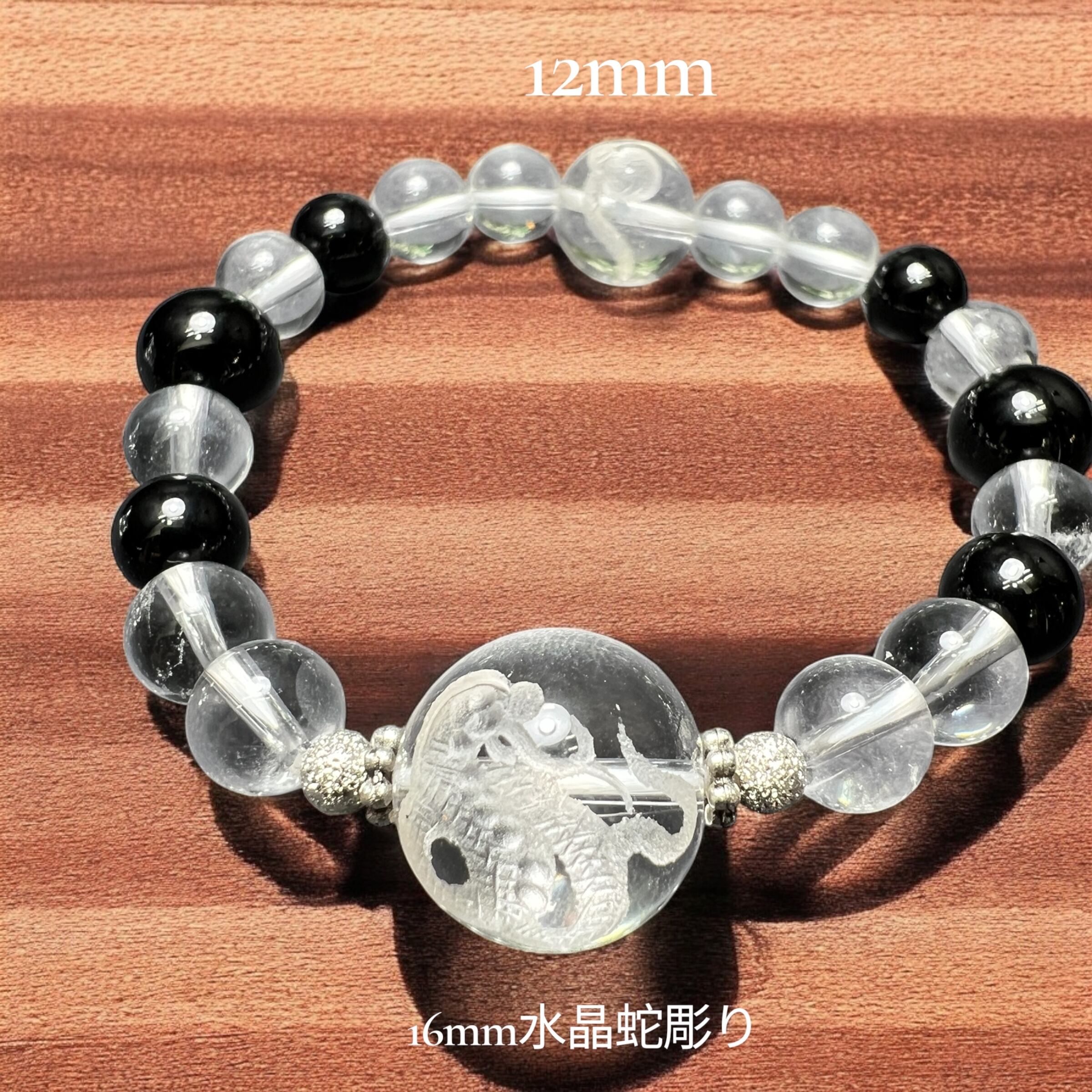 15.6 mm〜16 mm大玉水晶のヘビ彫りがポイントの守護ブレスです✨