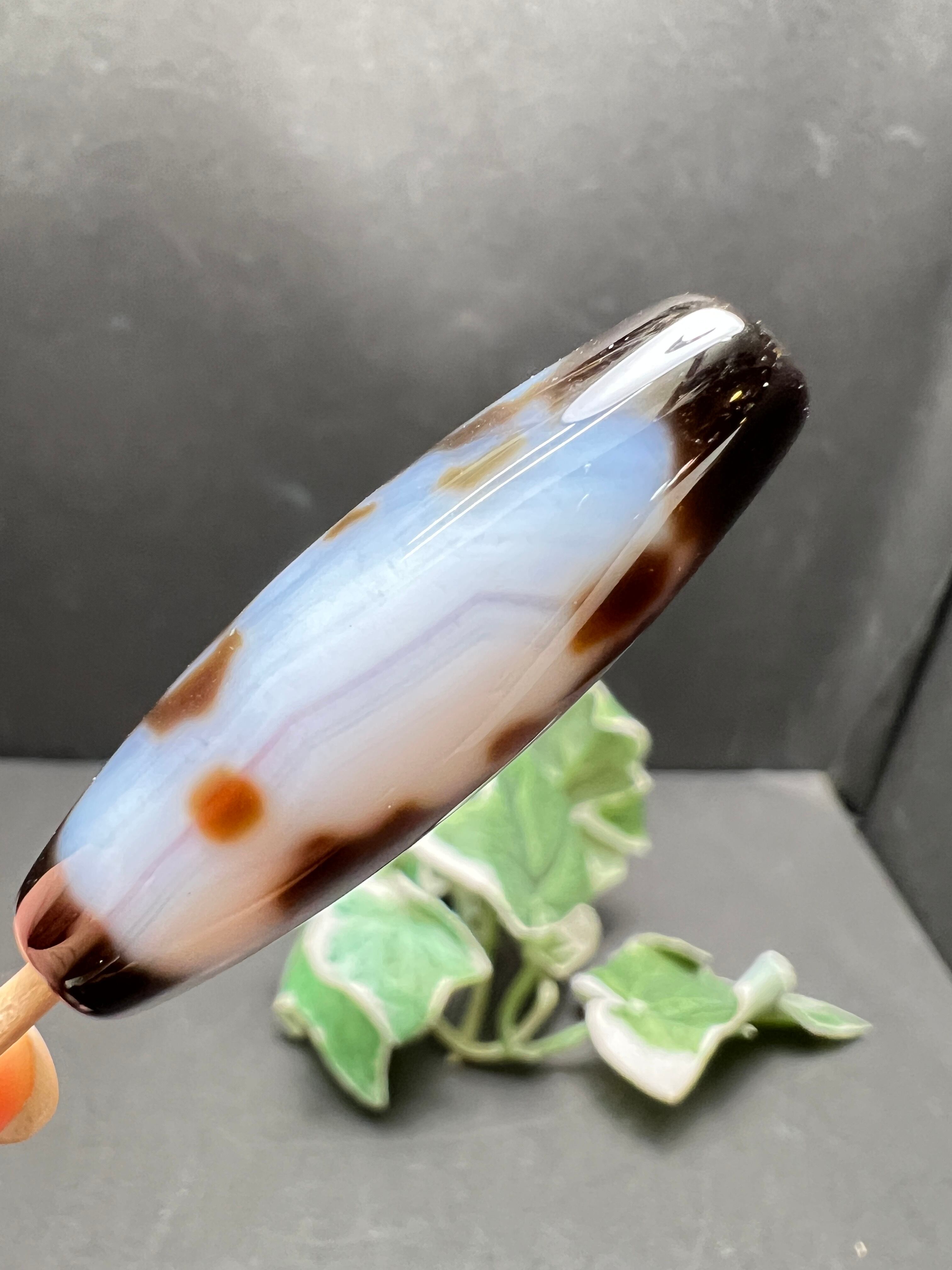 チベット西蔵から各地に伝わったことから、中国【西蔵天珠】と呼ばれています。メノウ、玉髄、カーネリアンなどを円筒形に加工し、表面に吉祥文様を焼き付けてます
