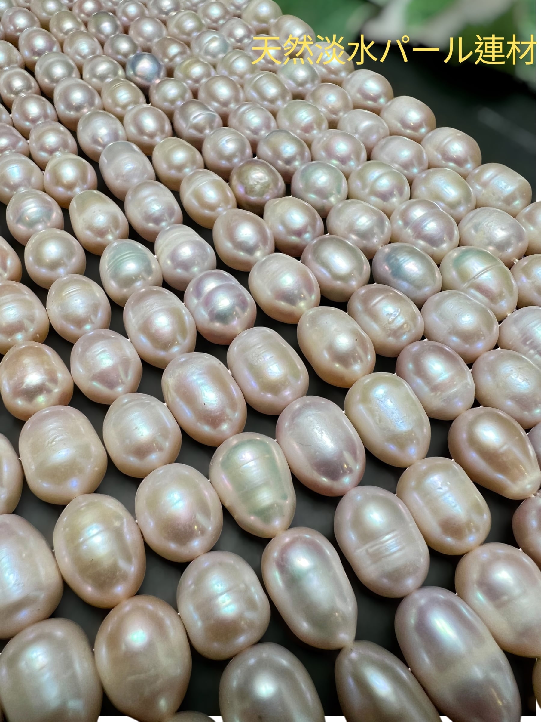 淡水パール卵形連材 お洒落 可愛い 天然石 高品質