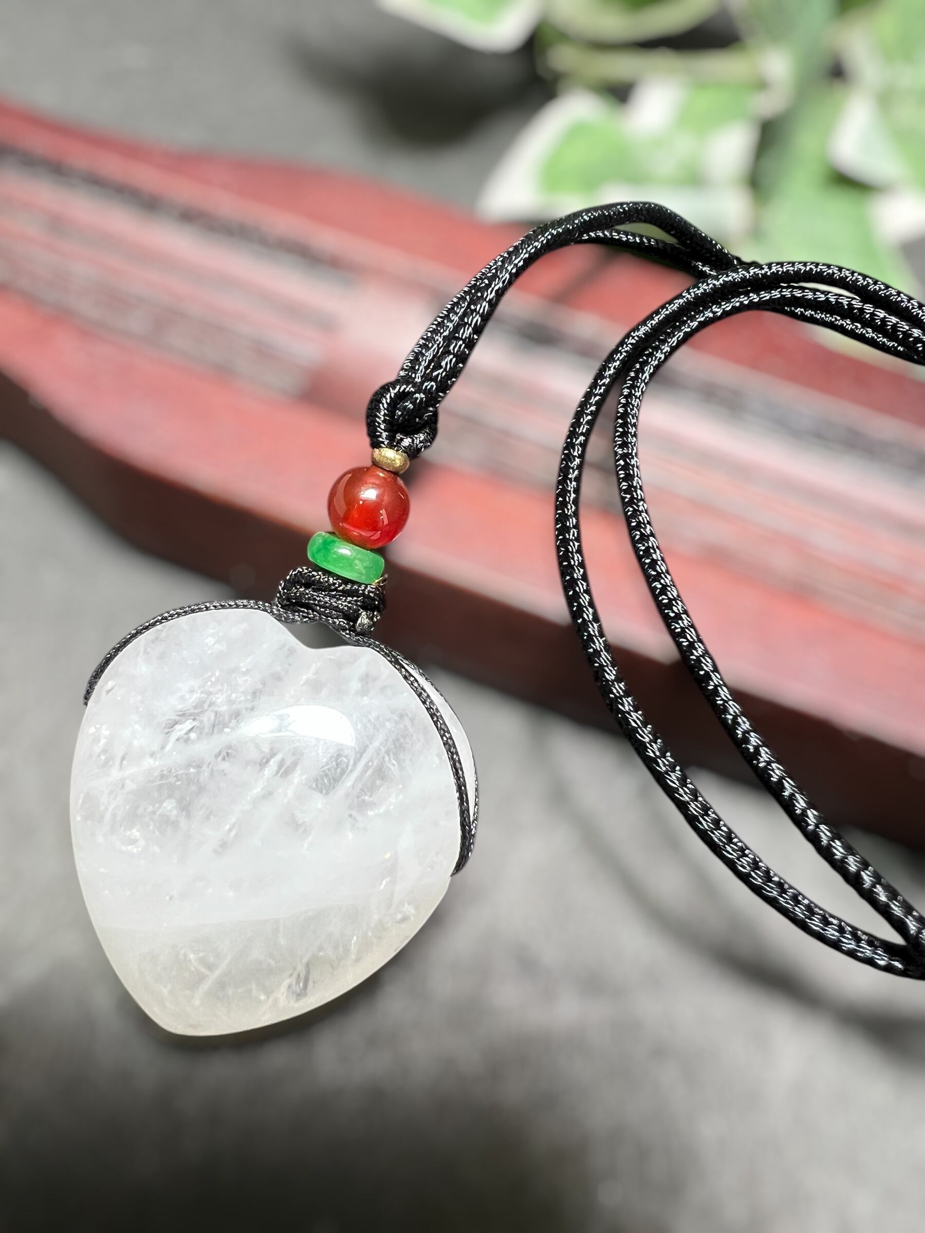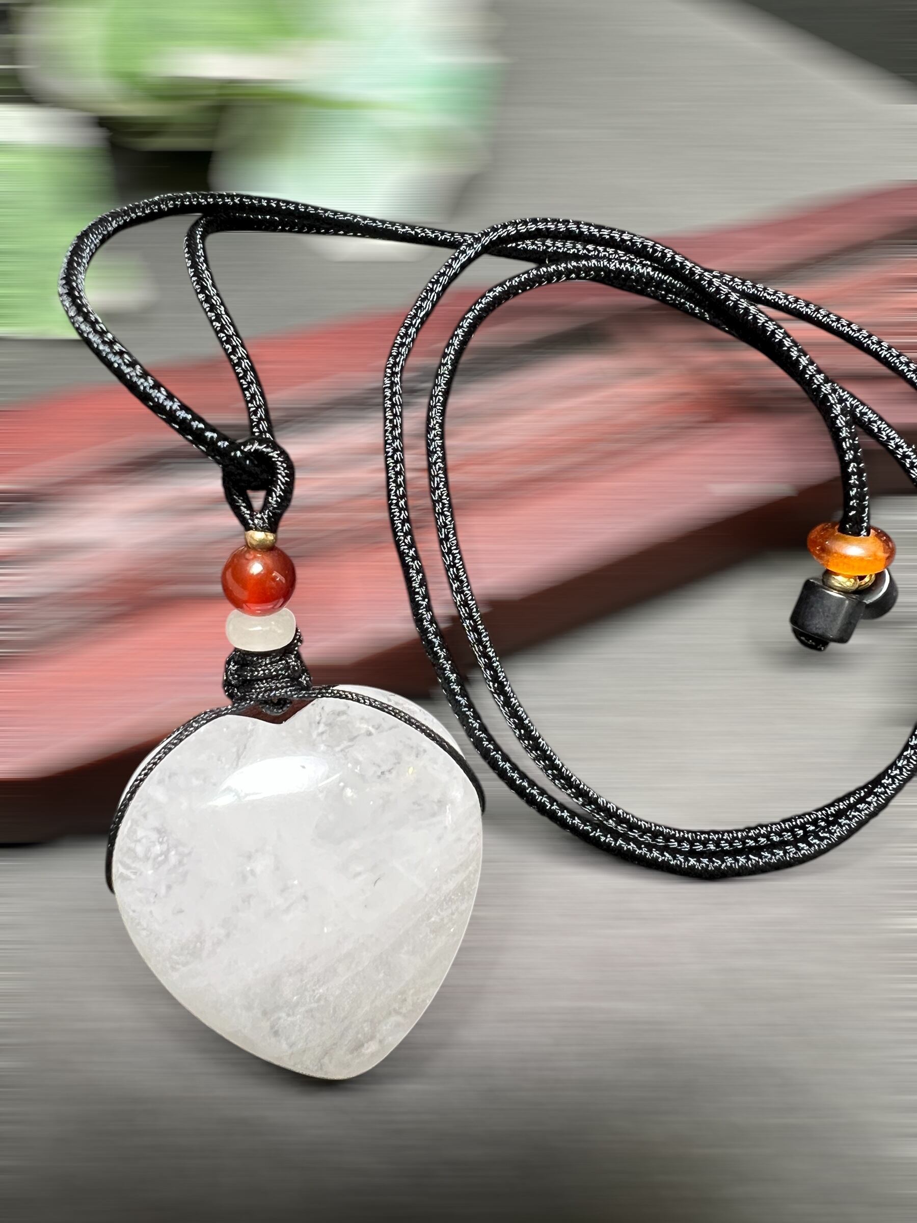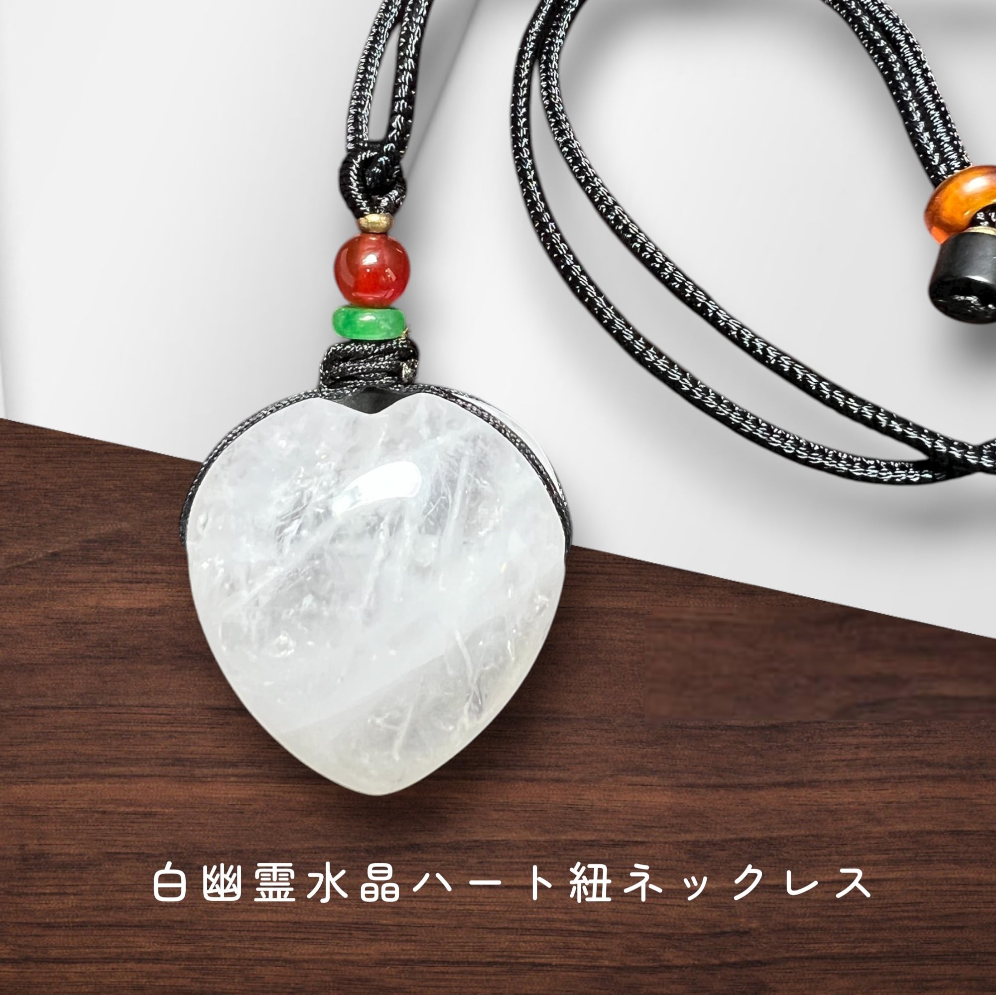 白幽霊水晶ハート紐ネックレス ヒ-リング効果か 癒し 美しさ 魅力up