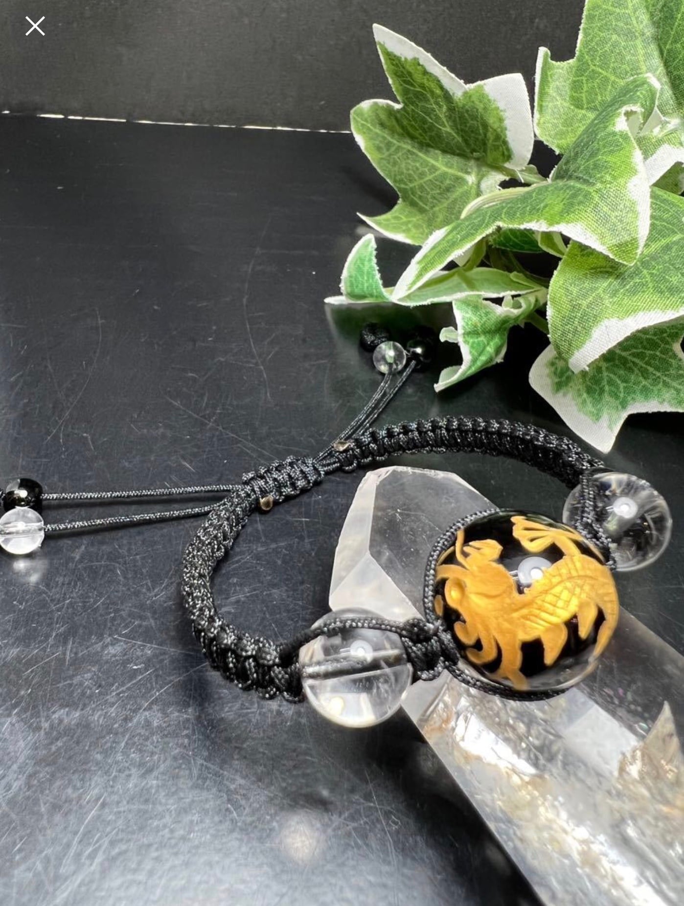 金龍様オニキス彫り&水晶紐ブレスレット パワーストーン 権力up 金運招来 パワーストーン