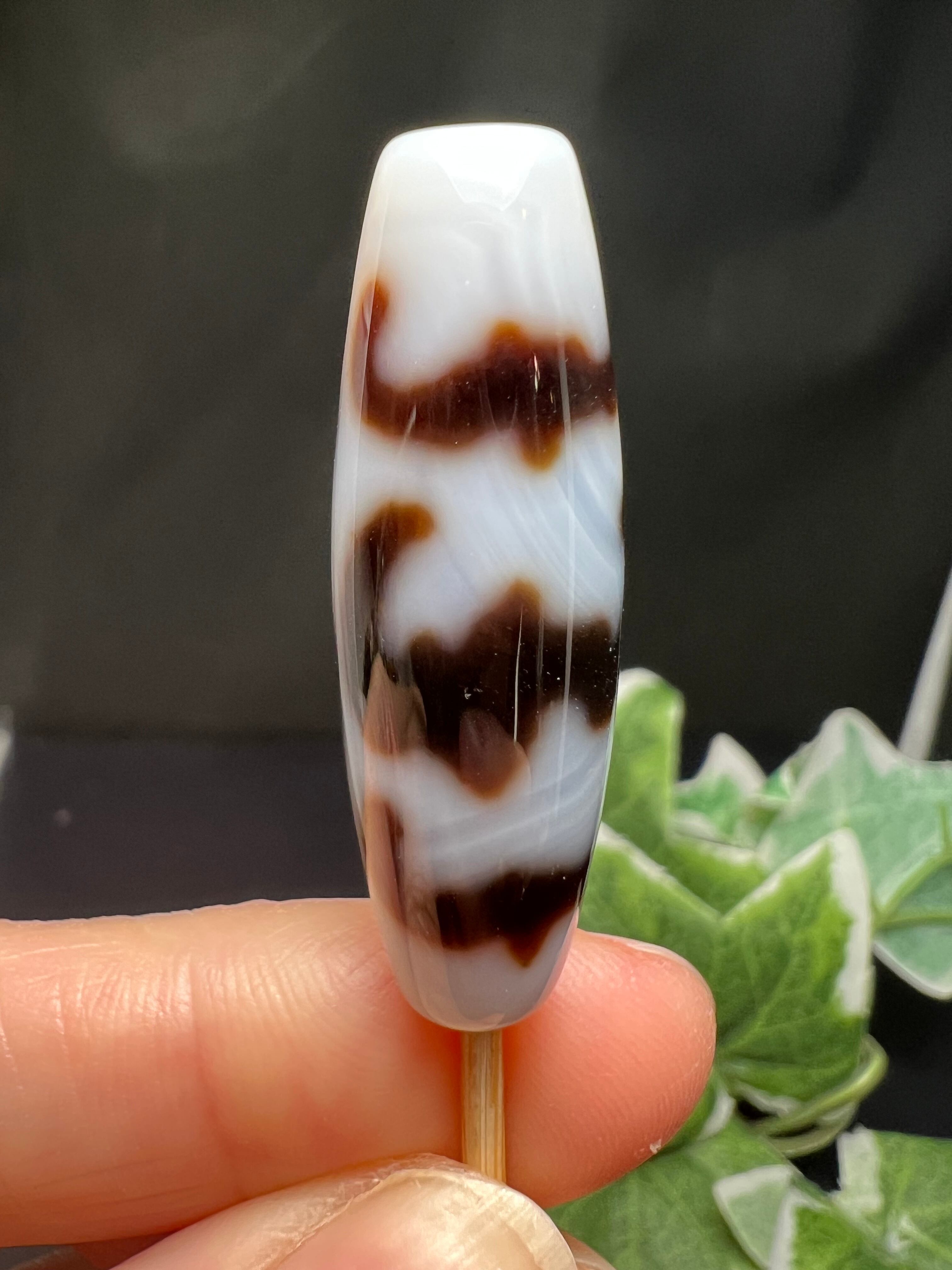 チベット西蔵から各地に伝わったことから、中国【西蔵天珠】と呼ばれています。メノウ、玉髄、カーネリアンなどを円筒形に加工し、表面に吉祥文様を焼き付けてます✨