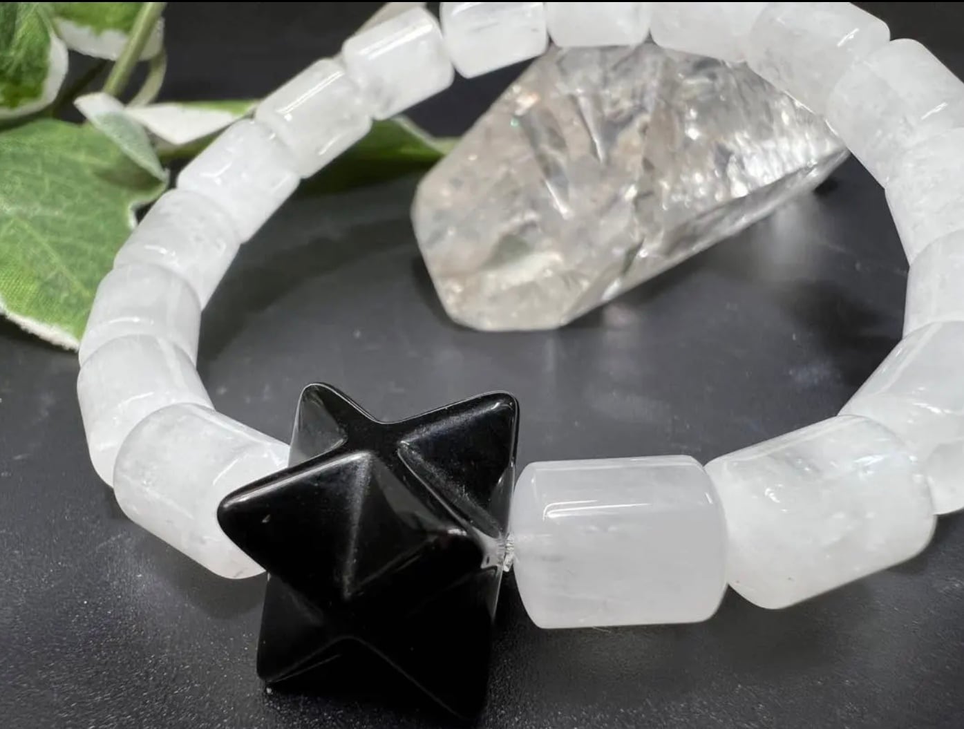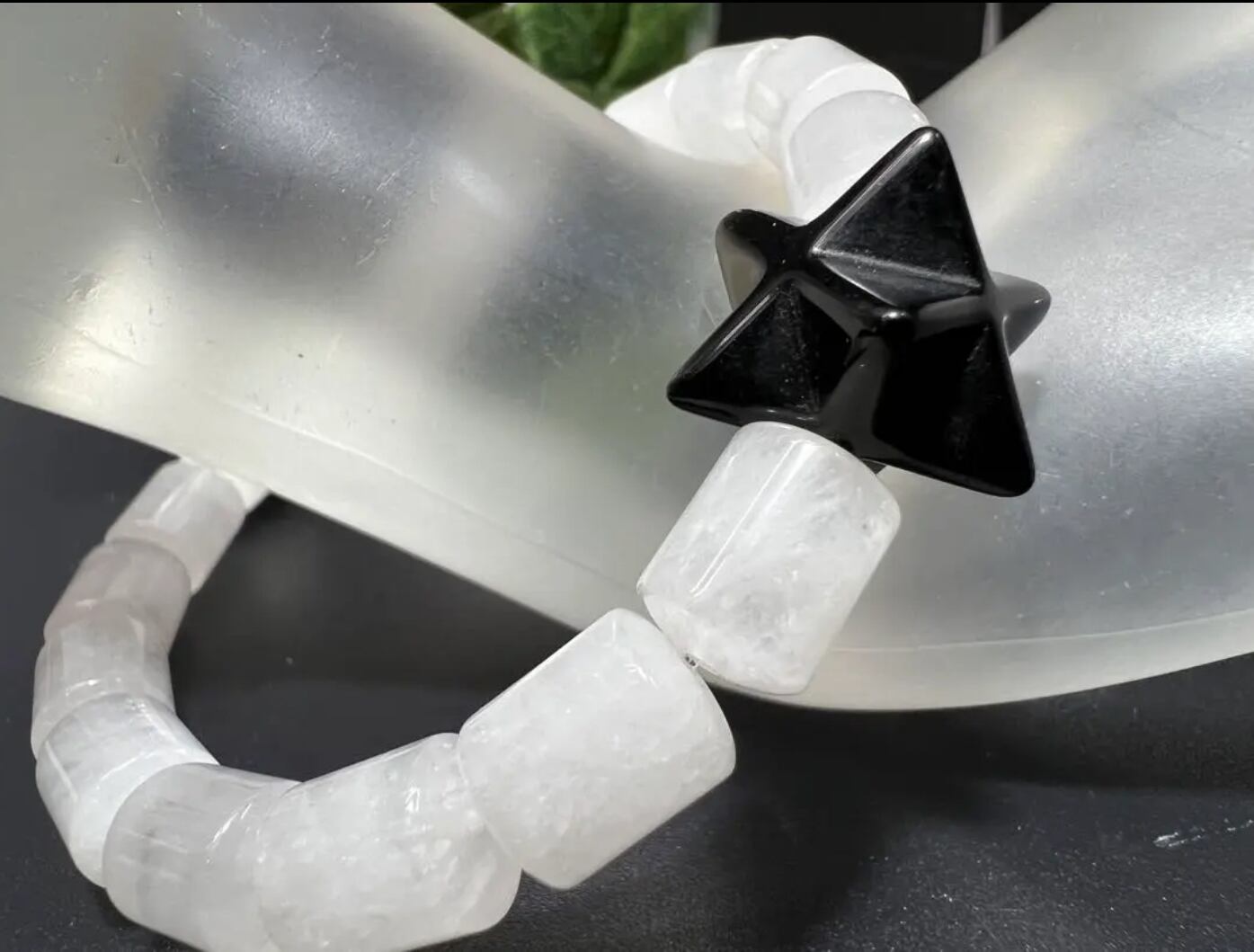 マカバスターオブシディアン&幽霊水晶ブレスレット 陰と陽の調和エネルギー お守り
