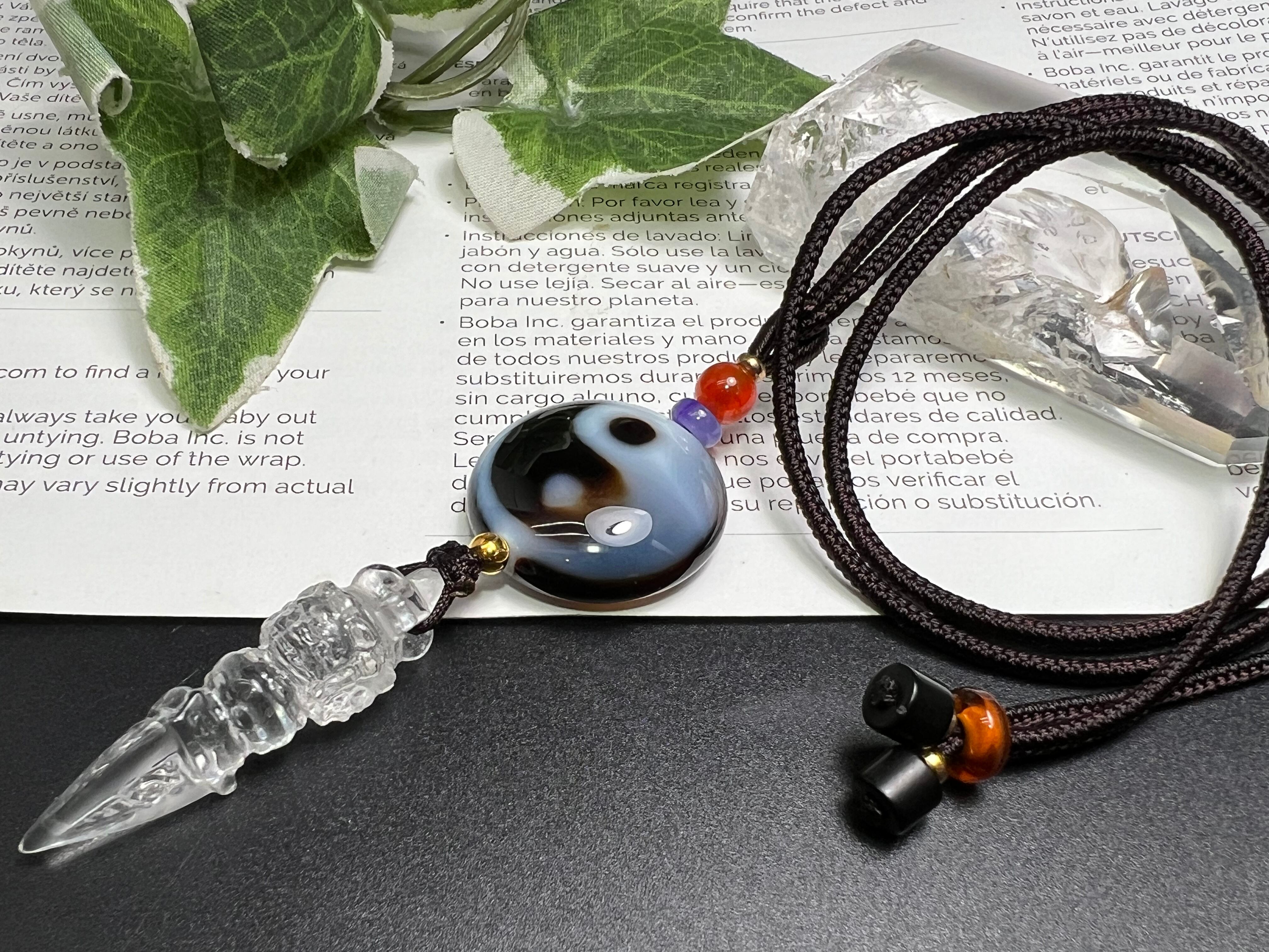 水晶プルパ& 太極陰陽天珠ネックレス 結界張って 魔除け 密教から最高の武器❣️