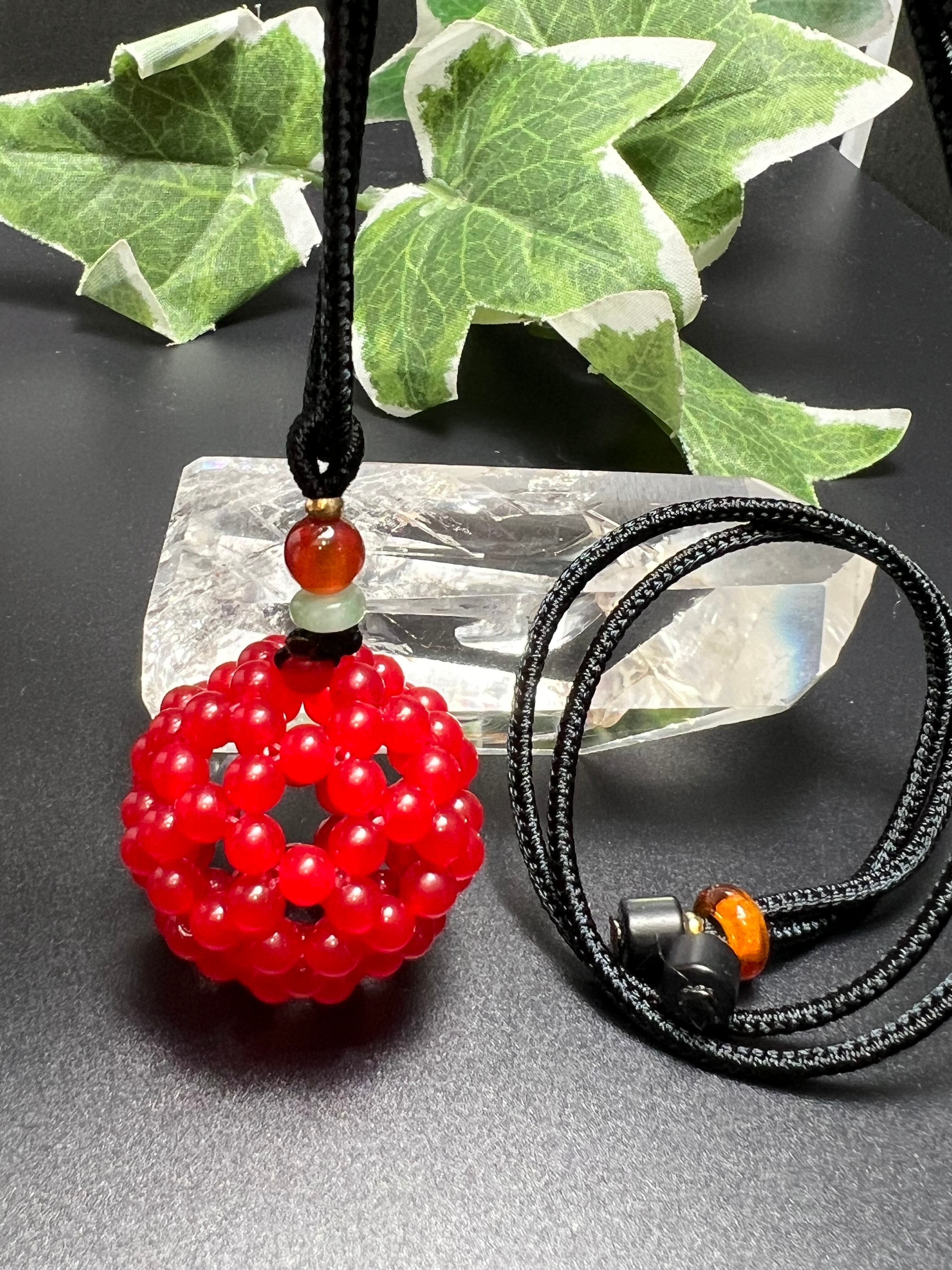 神聖幾何学フラーレン 幸福呼ぶの奇石 秘紅石4mm紐ネックレス ✨宇宙エネルギー