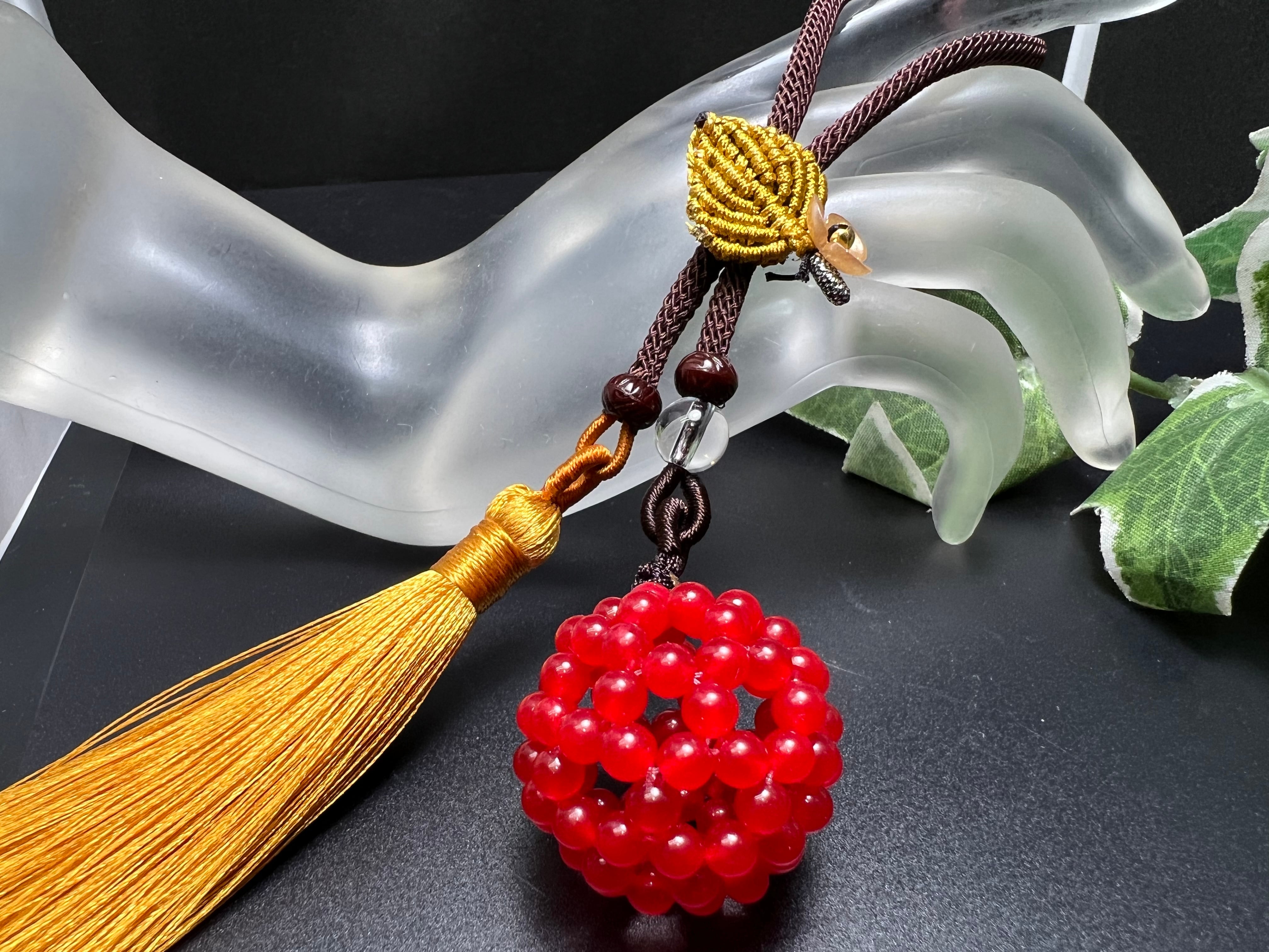 神聖幾何学フラーレン 幸福呼ぶの奇石 秘紅石4mm紐ストラップ✨宇宙エネルギー