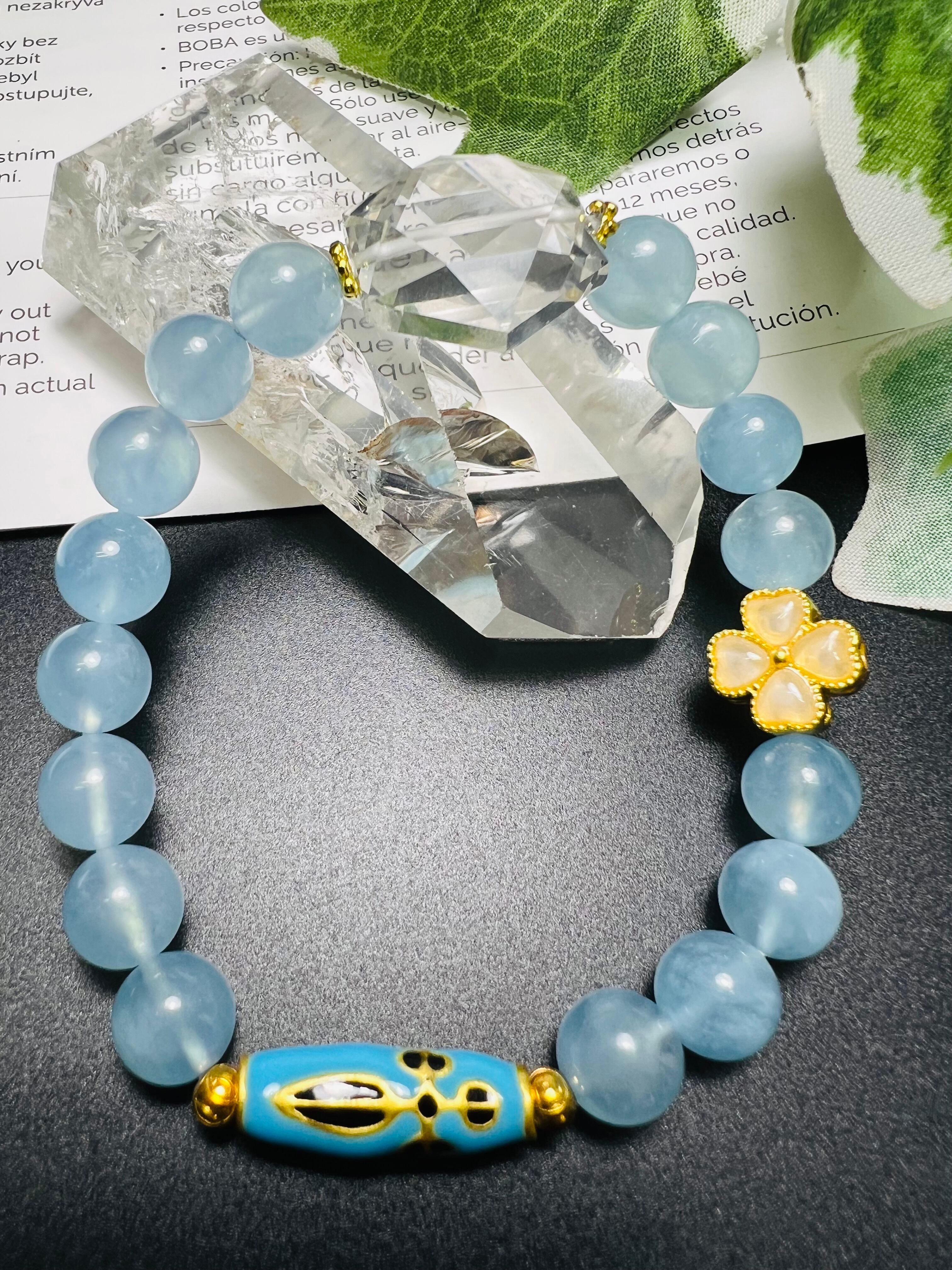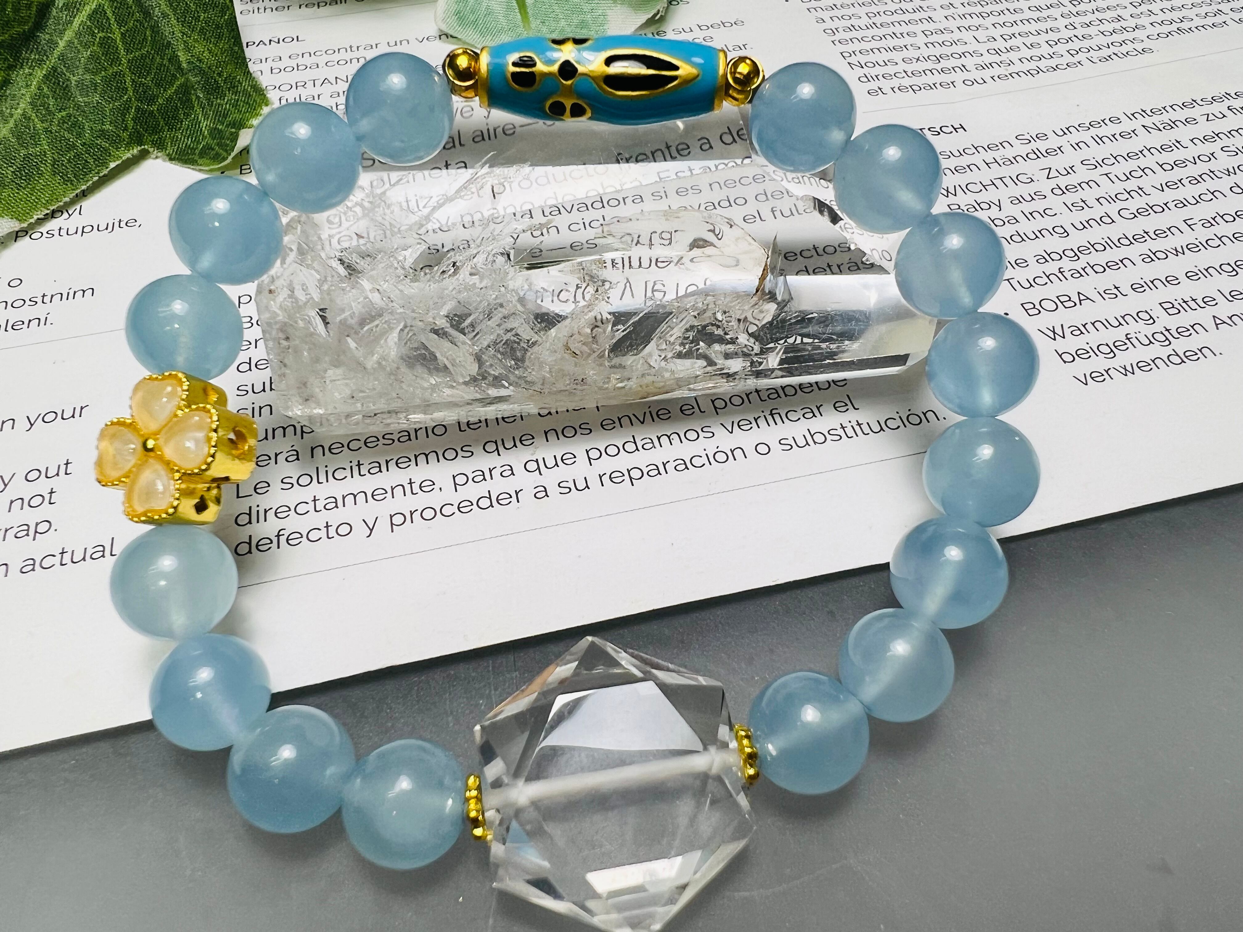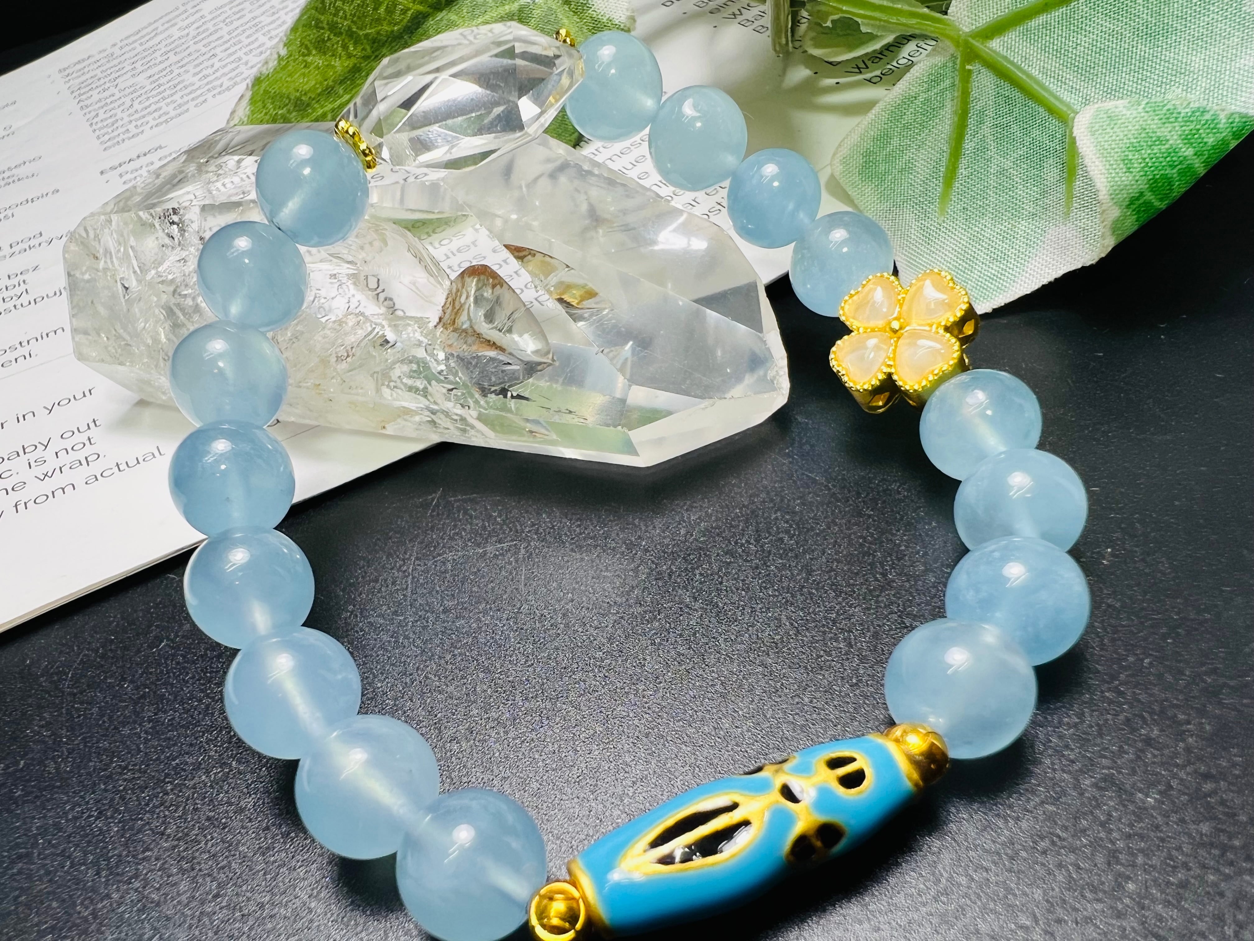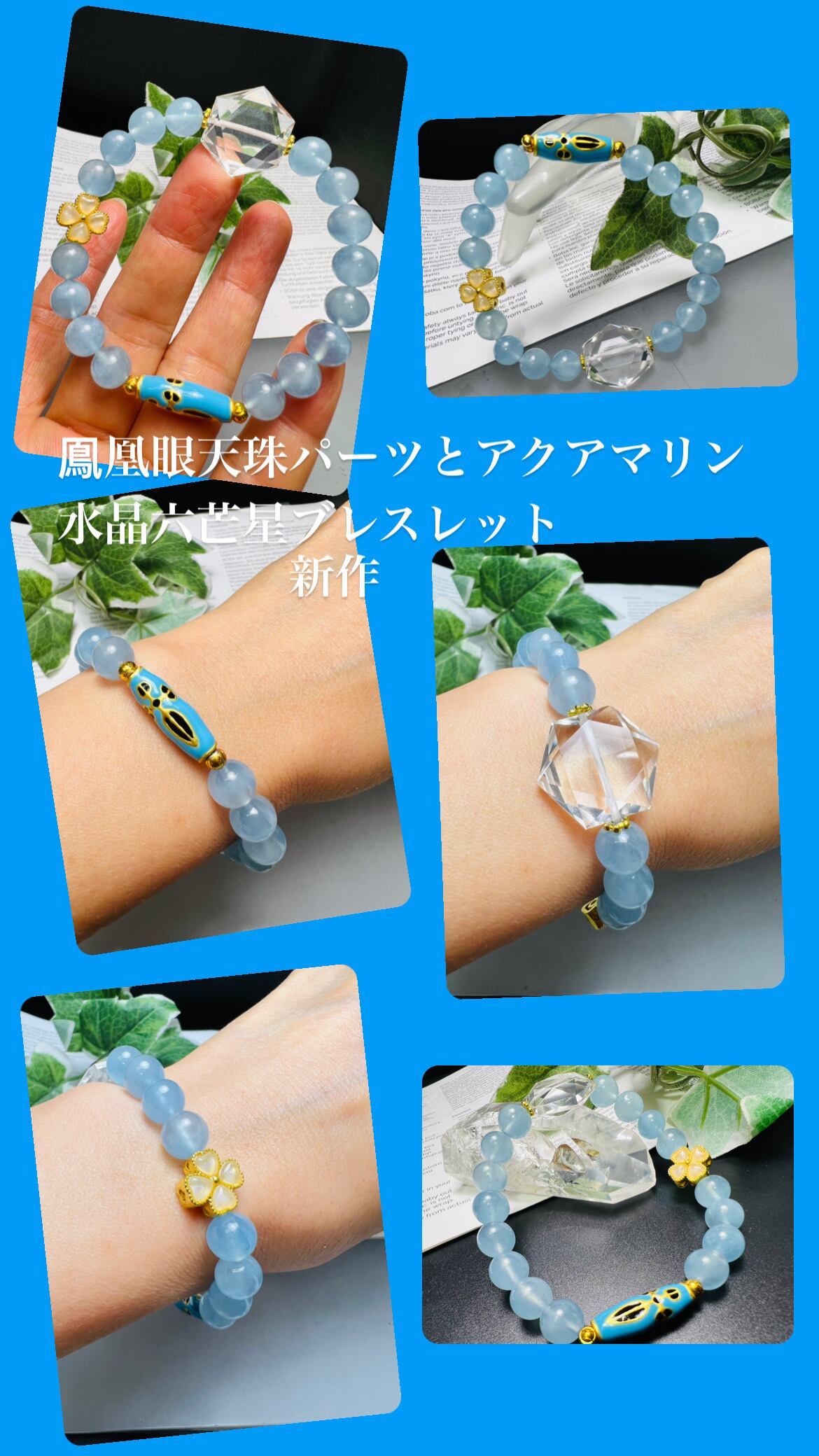 鳯凰眼天珠パーツとアクアマリン 水晶六芒星ブレスレット