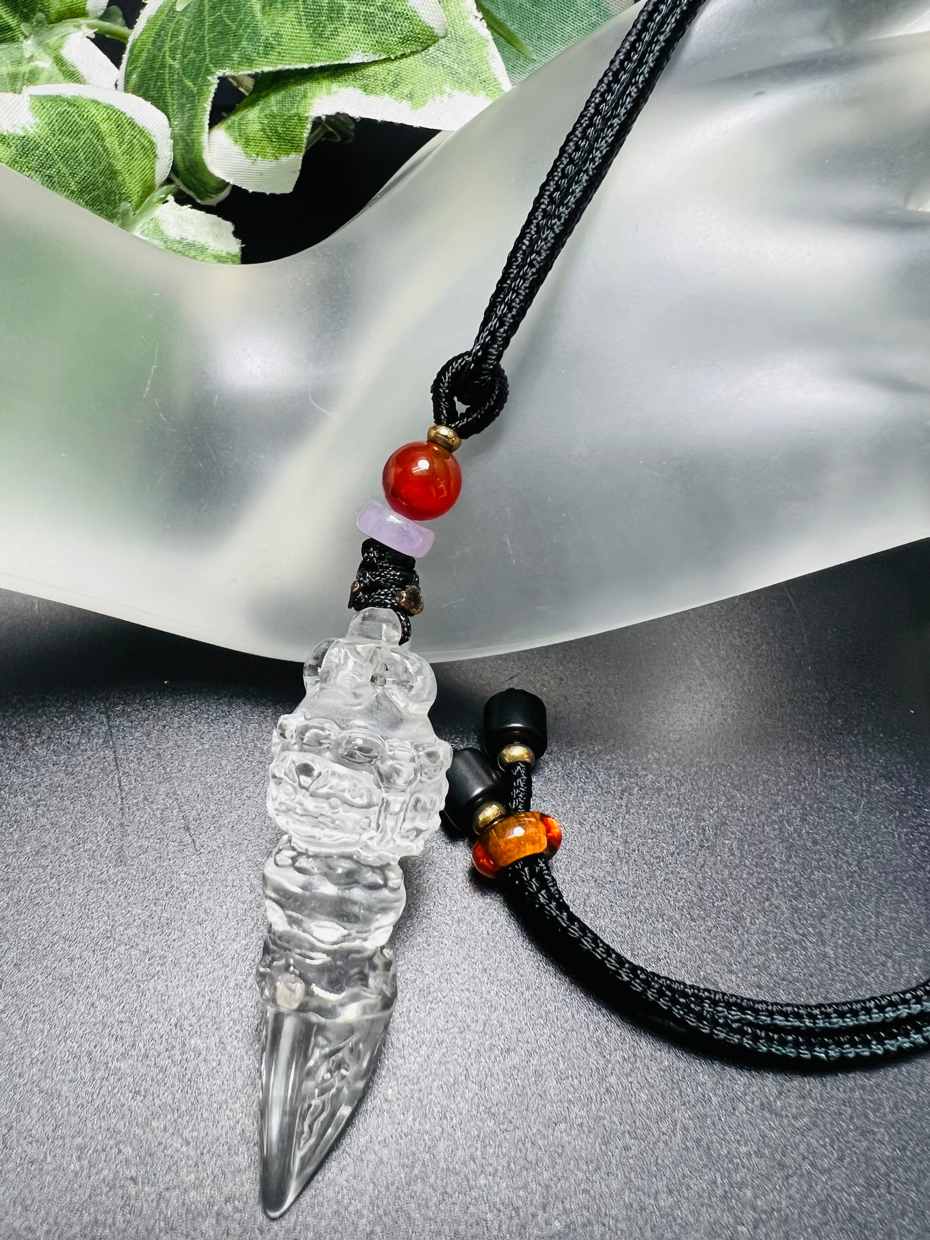 天然水晶彫りプルパ紐ネックレス 結界張って 魔除け カッコイイ 幸福呼ぶ✨