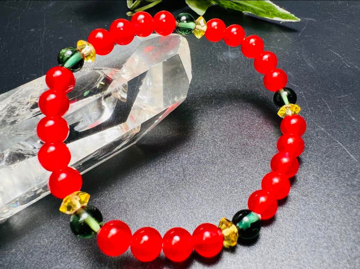 グリーンクオーツ緑水晶,秘红石,シトリンミラクルズストーンブレスレット