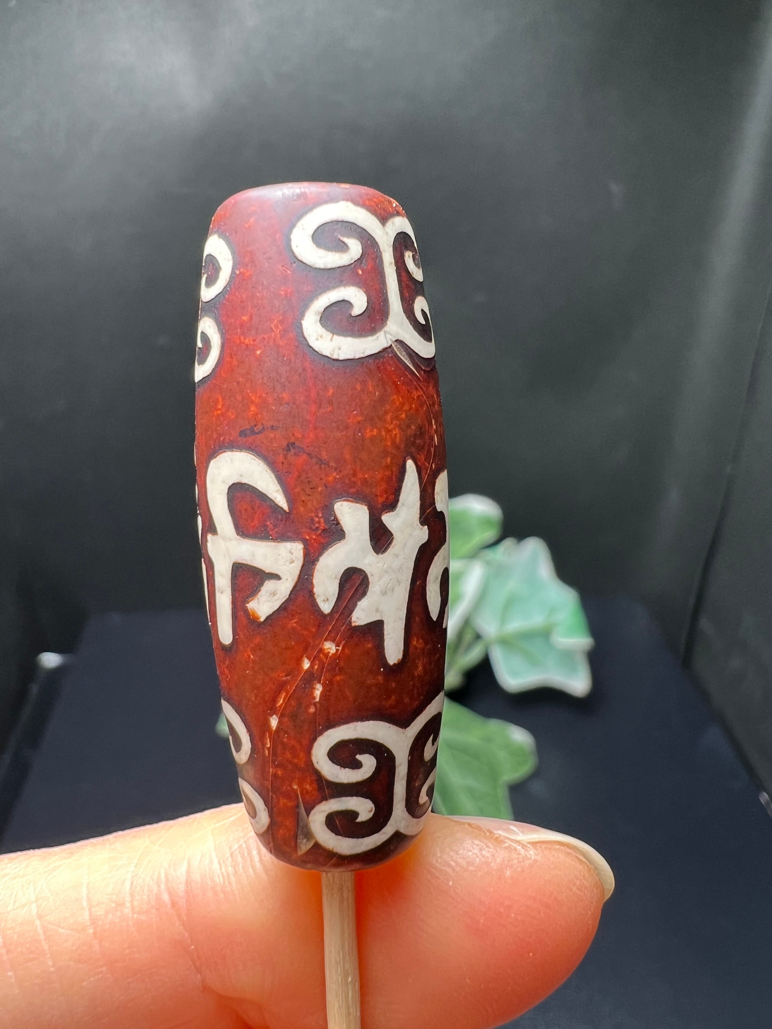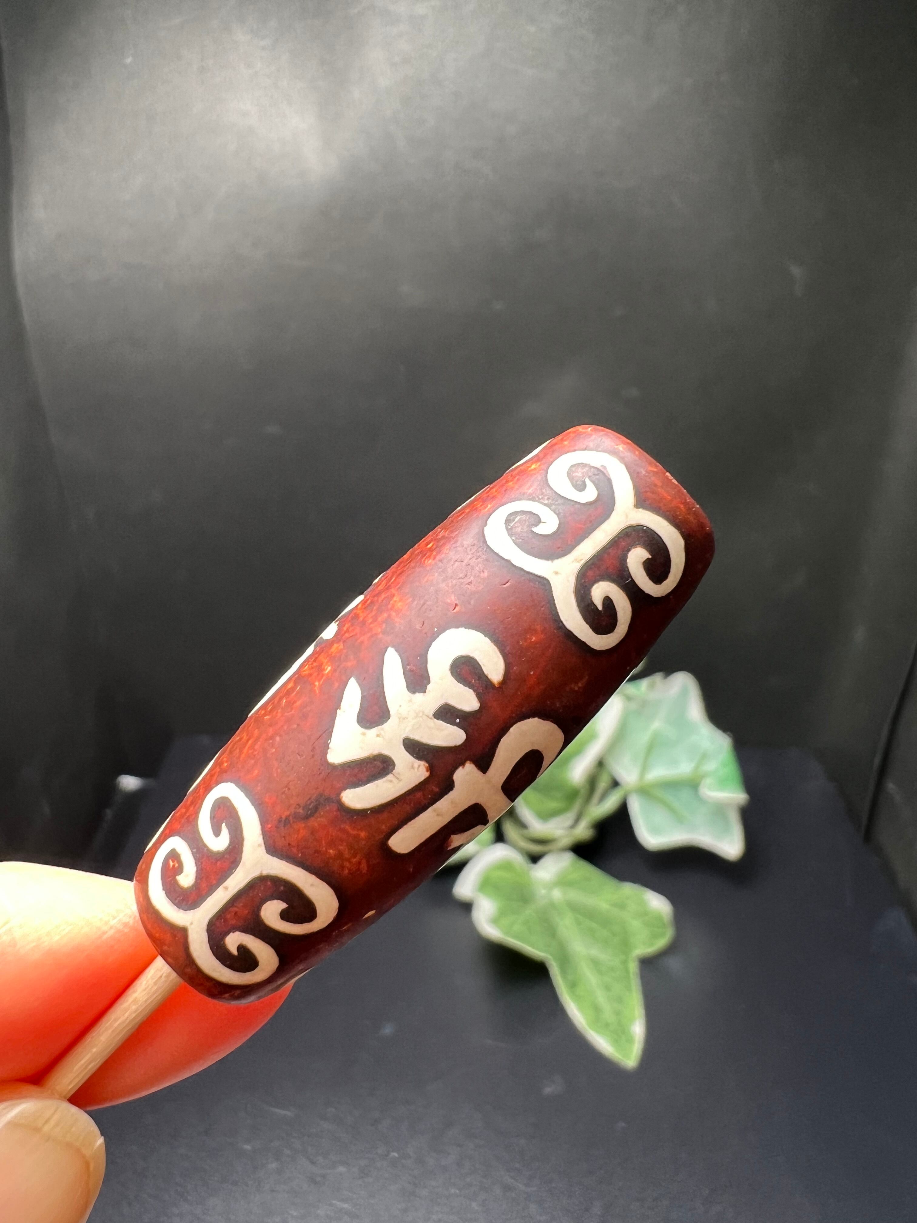 チベット西蔵から各地に伝わったことから、中国【西蔵天珠】と呼ばれています。メノウ、玉髄、カーネリアンなどを円筒形に加工し、表面に吉祥文様を焼き付けてます