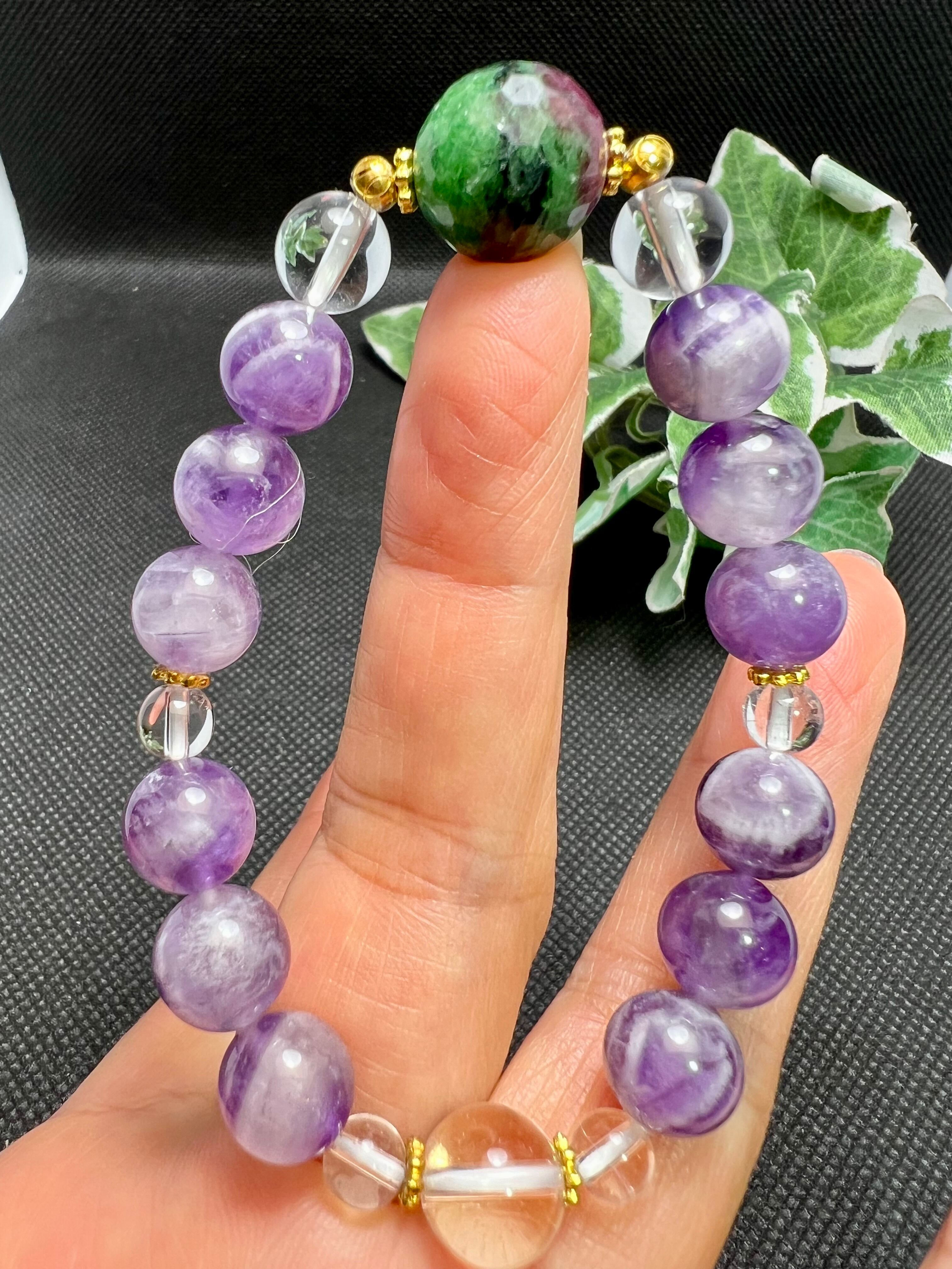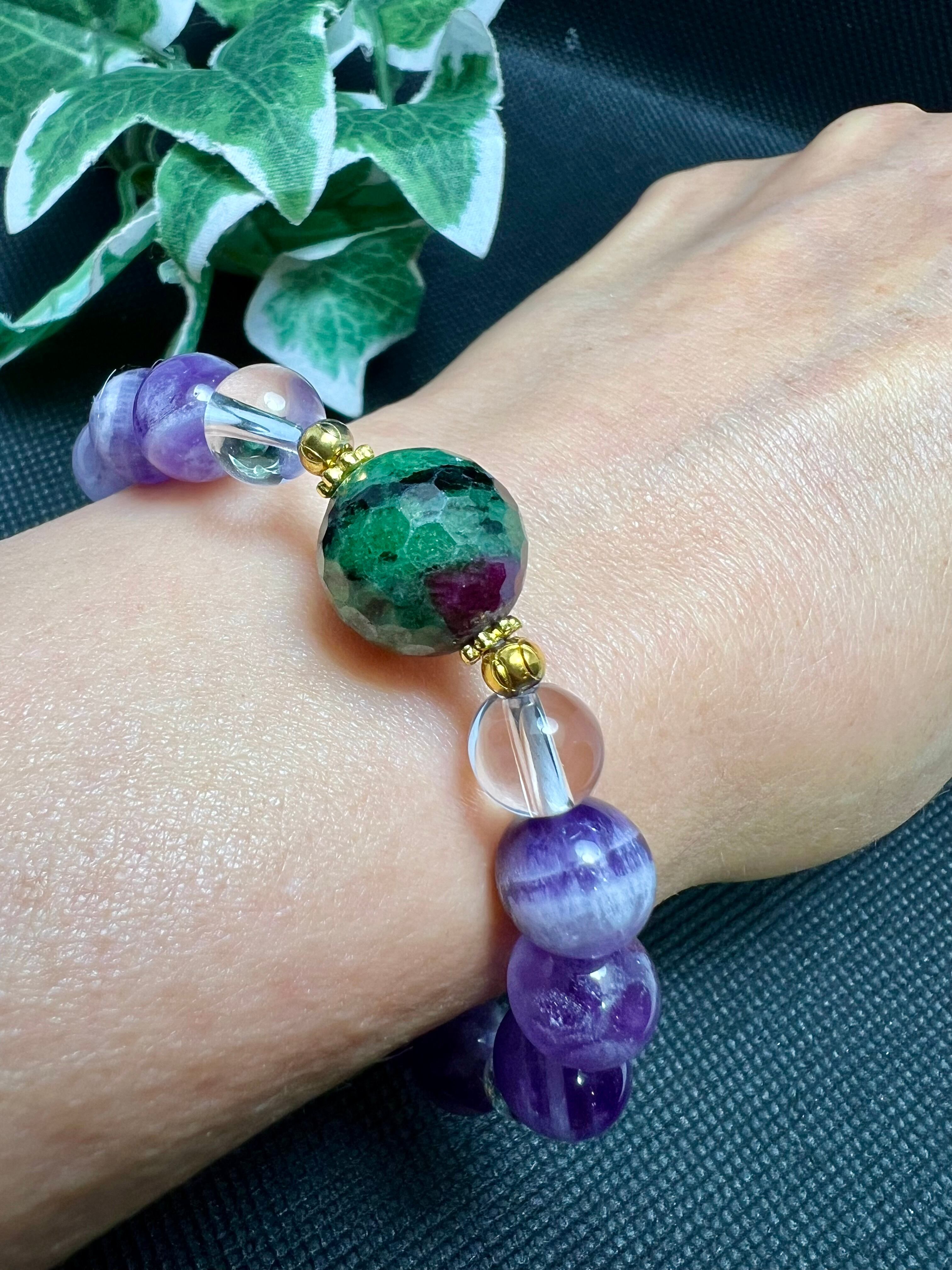 ルビーインゾイサイト&アメジストブレスレット 魔力を秘めた石✨愛情引き寄せ❣️