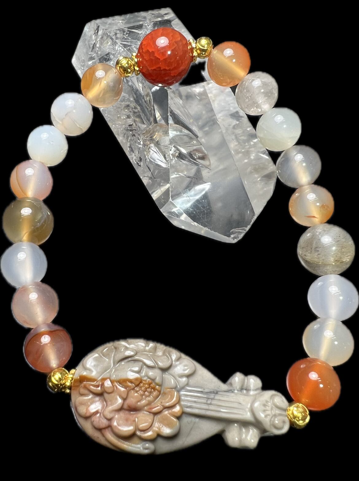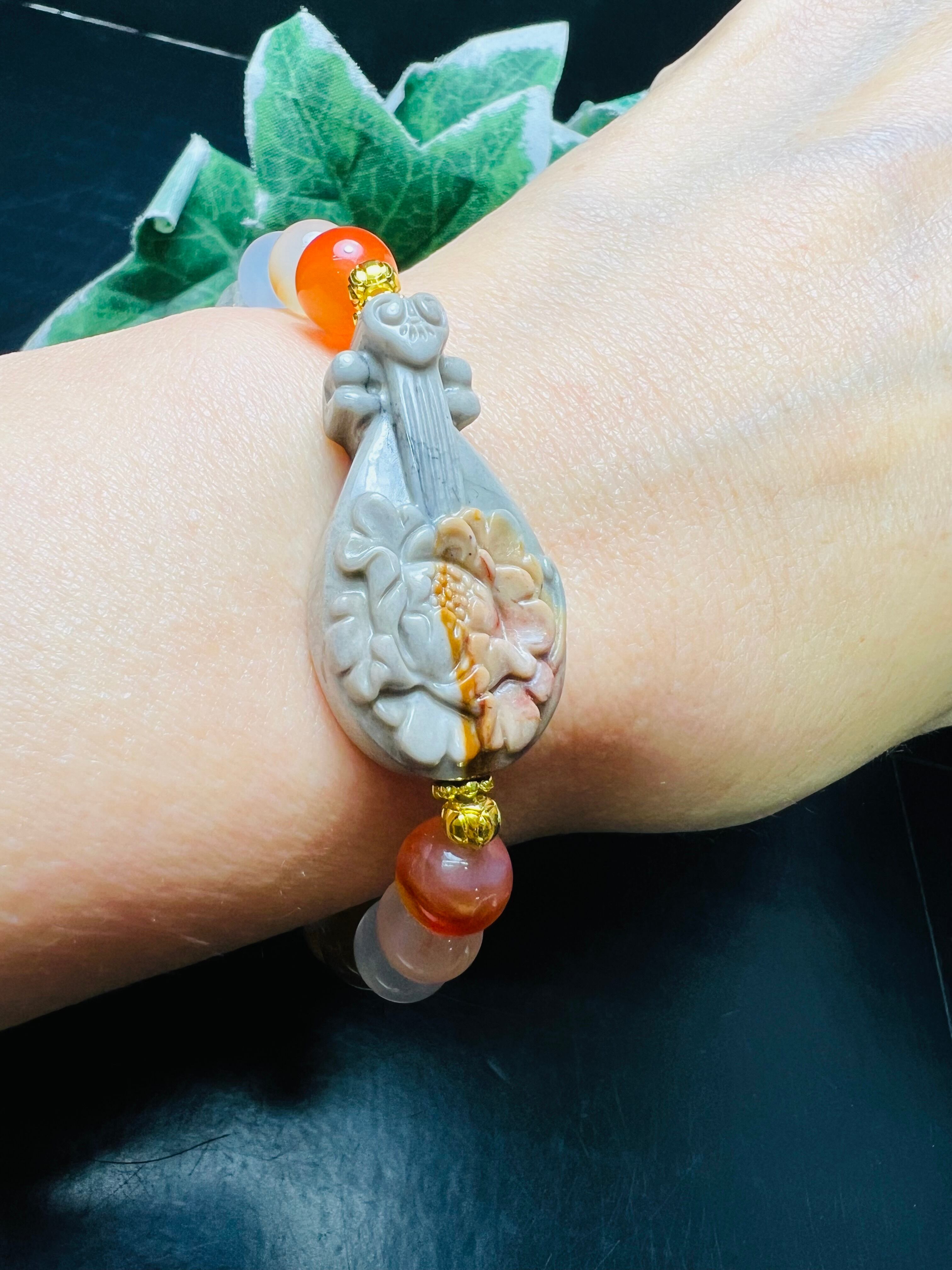 弁財天様の琵琶✨瑪瑙&サンストーンブレス❣️才能開花✨美しさ✨財福招来✨