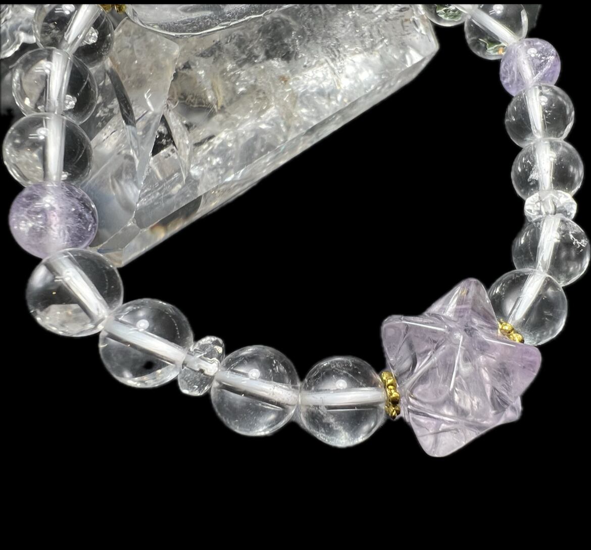 8 mm水晶とピンクアメジスト