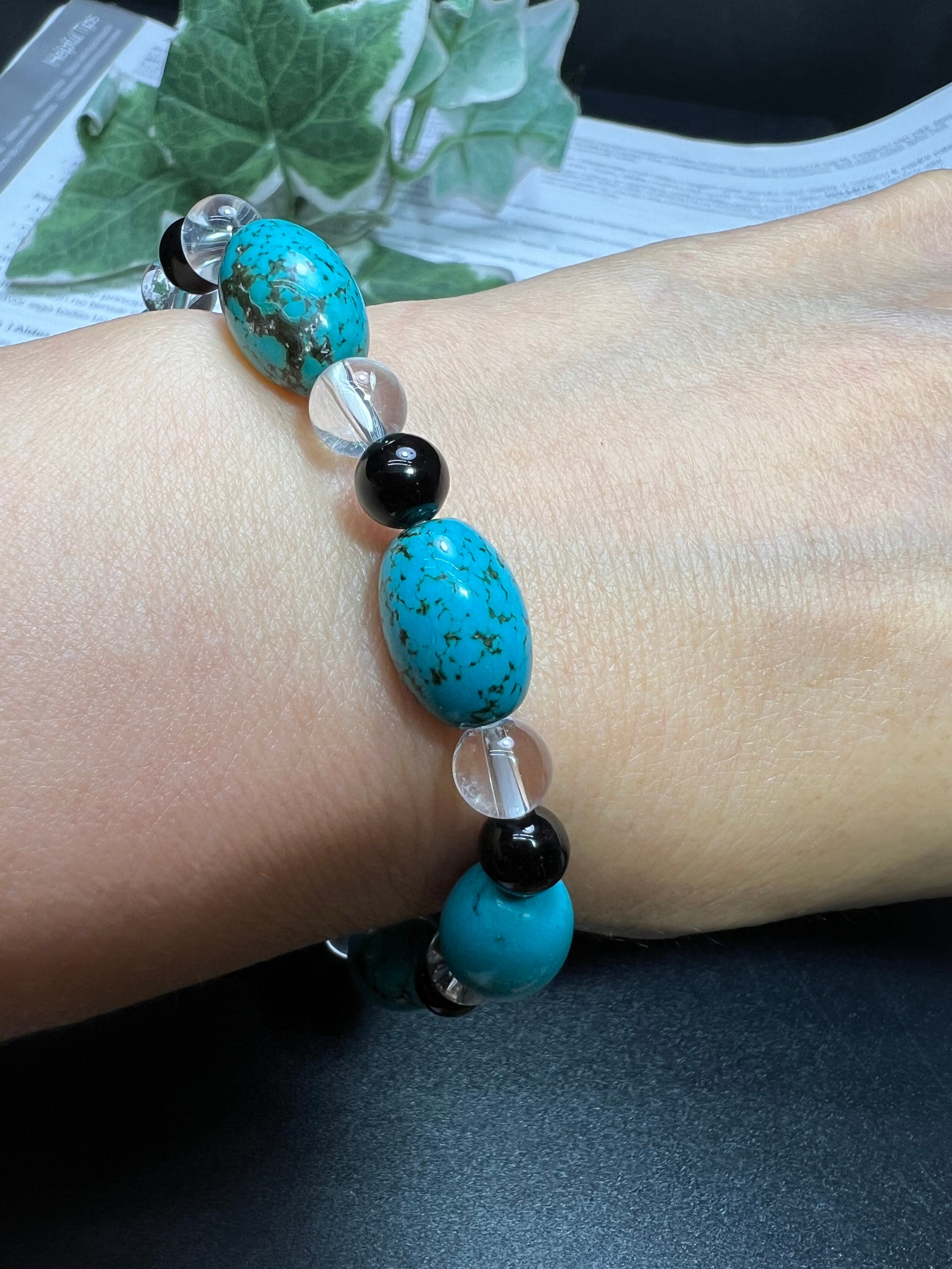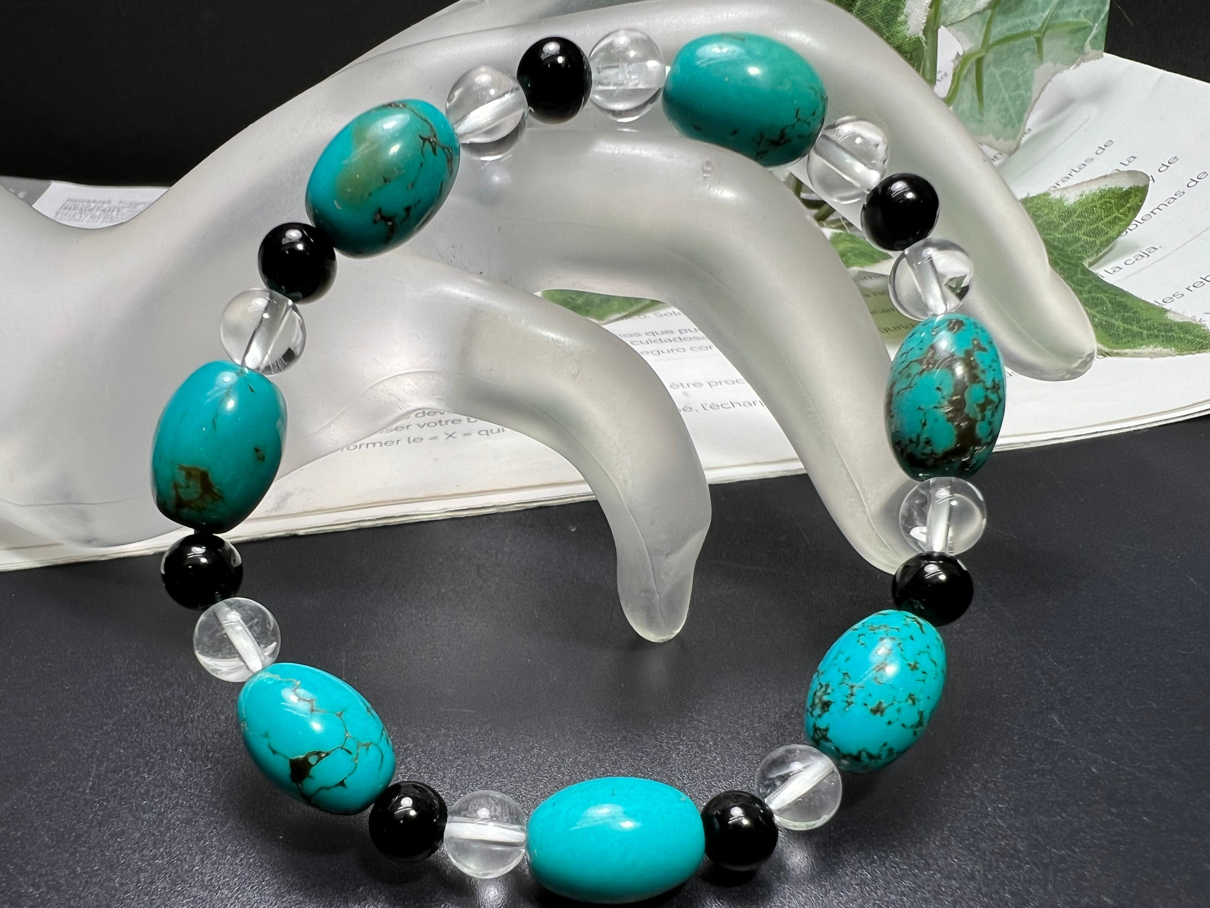 トルコ石卵型とオニキスと水晶デザイン、ブレスレット❣️勇気と希望高める