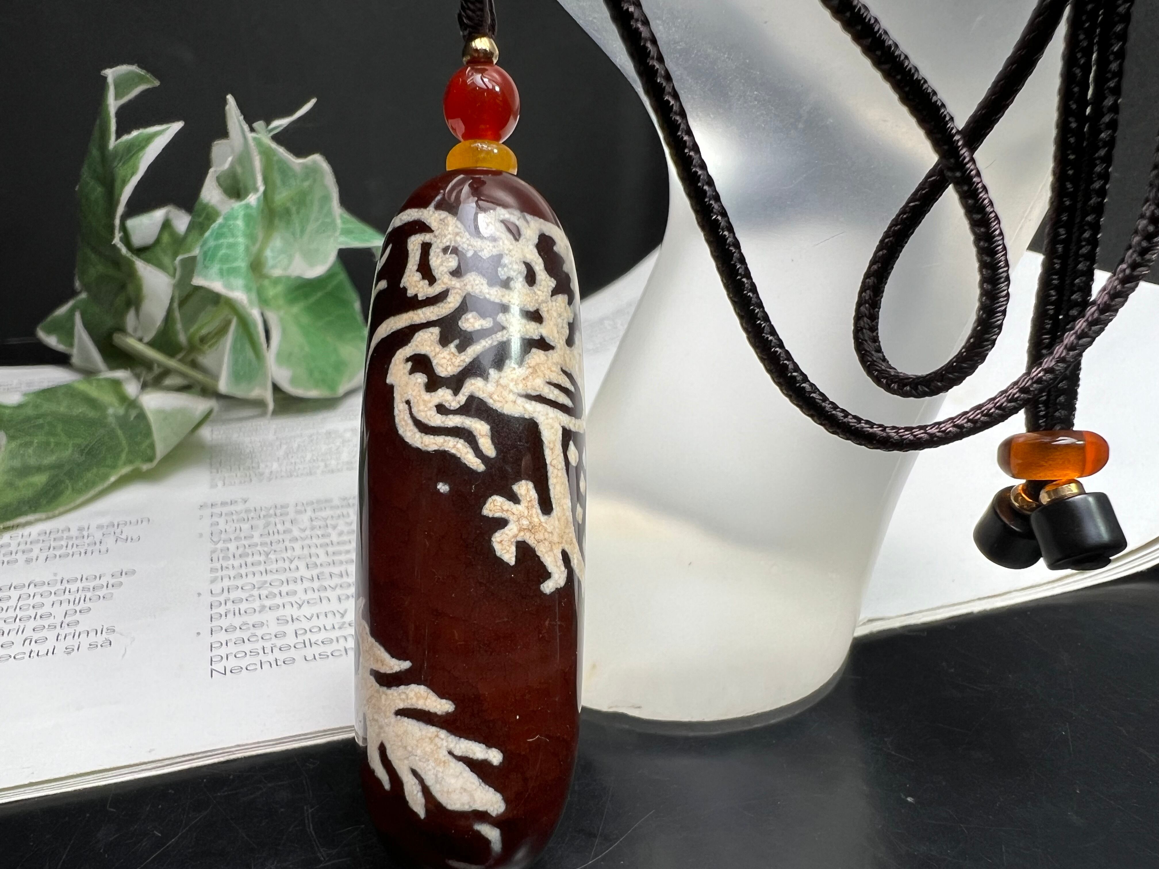 龍神天珠紐ネックレス❣️瑪瑙 皇帝龍 財運 富 権力 名誉 幸福呼ぶ 幸運